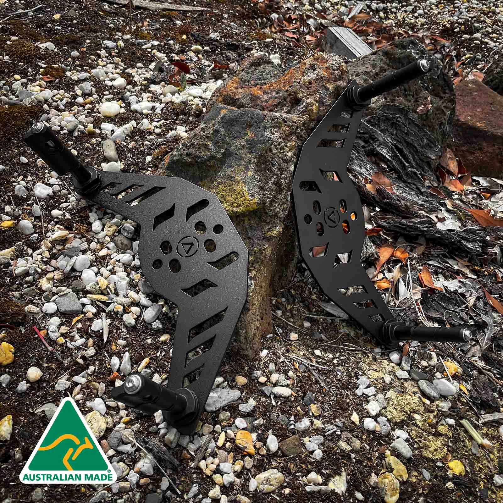Our brackets are produced in Melbourne and made from black powder coated 5mm Aluminium plate. All supplied hardware, including channel nuts, are made from durable 300-series stainless steel to avoid rusting.