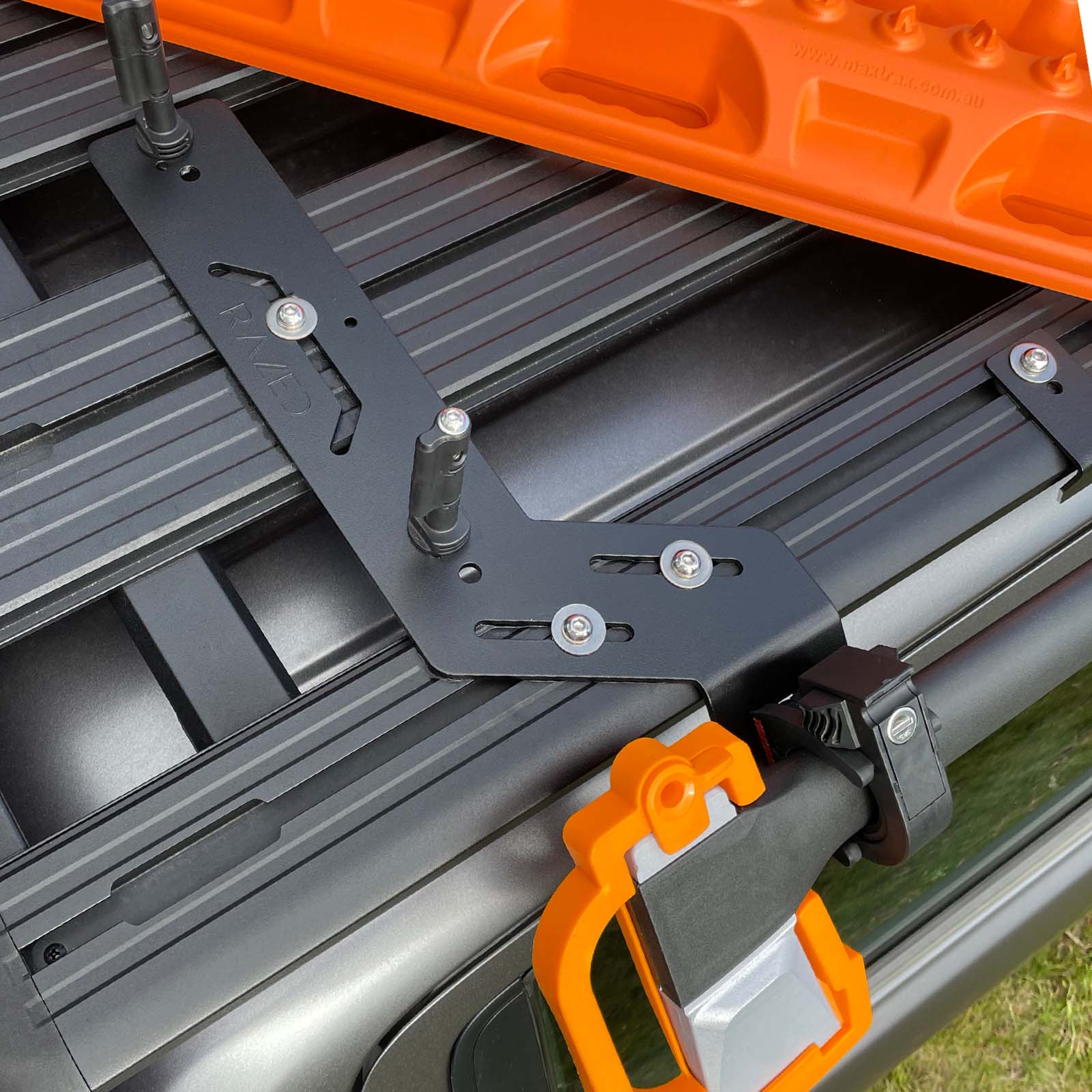 This kit is designed to mount MAXTRAX MkII or XTREME Recovery Tracks and a shovel or axe to your Rhino Rack Platform (or other compatible platform roof racks) in the one simple, flush-mount solution.